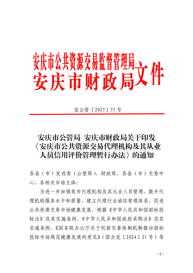 安庆市公管局 安庆市财政局关于印发《安庆市公共资源交易代理机构及其从业人员信用评价管理暂行办法》的通知
